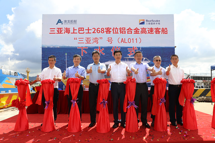 5月27日09:38,中交海投所屬三亞藍(lán)色干線268客位高速客船“三亞灣”號(hào)在澳龍船廠順利下水。中交海投黨委副書(shū)記、總經(jīng)理周濟(jì),九洲控股集團(tuán)副總經(jīng)理、九洲藍(lán)色干線公司黨委書(shū)記、董事長(zhǎng)梁凱斌,澳龍船廠董事長(zhǎng)晏志清出席儀式并致辭。